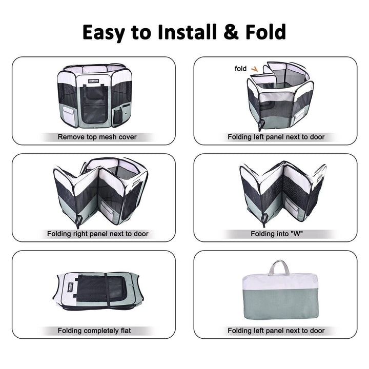 Jespet 2-Door Portable Soft-Sided Dog, Cat & Small Pet Exercise Playpen, Green, 36''