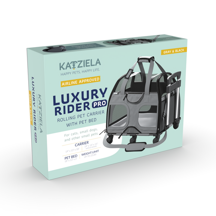 Elevate your customers’ travel experience with the Luxury Rider Wheeled Pet Carrier. Designed to provide business class comfort even when you're flying coach, this carrier features a soft, furry cushioning bed and a spacious interior. Perfect for seamless travel, Katziela's Luxury Rider Pet Carrier comes with a double telescopic handle, removable wheels, and a range of other features for versatility and long-lasting performance.