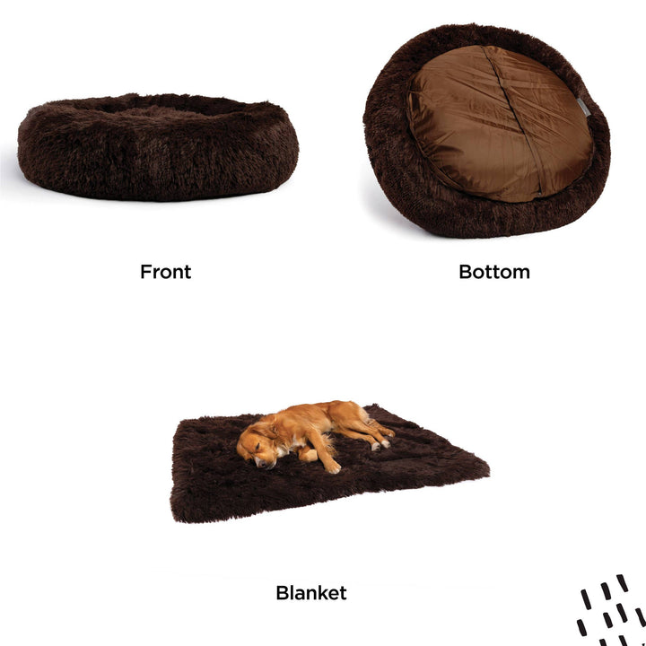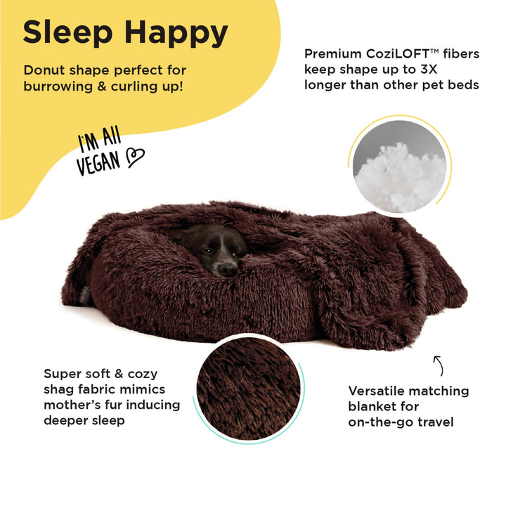 Pet Palette Distribution - Donut Shag Bundle Bed and Blanket Dark Chocolate 30"x30"