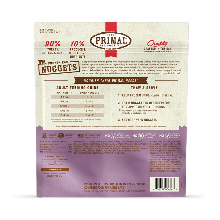 Nourish your cat’s primal needs with complete and balanced, easy-to-use Primal Frozen Raw Nuggets. Our Rabbit Recipe raw cat food features farm-raised, antibiotic-free rabbit raised without steroids or added hormones. There’s no need to grind, chop, measure, or mix. Simply thaw and serve as a meal or a mixer to keep your cat in their prime. Available in 3-pound resealable bags.